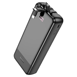 Hoco J155 Power Bank, USB Port x2, Type-C port x1, Micro Charging Port. Comes with Built In 4 Cables, (Lightning Cable, Type-C Cable, Micro Cable etc.) and has a Flash Light. (20,000 mAh)